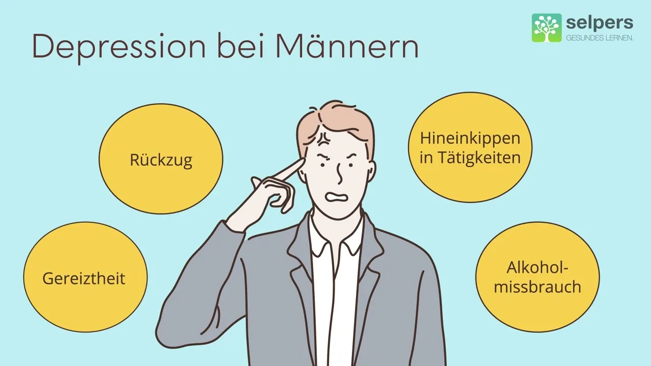 - Männer zeigen häufiger Symptome wie Reizbarkeit, Wut oder Risikoverhalten statt klassischer Traurigkeit.