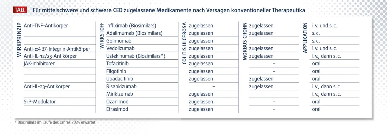 Eine neuere Entwicklung sind die sogenannten JAK-Inhibitoren (Januskinase-Inhibitoren), die zu den "Small Molecules" zählen. Wirkstoffe wie Upadacitinib und Tofacitinib werden als Tabletten eingenommen und stellen somit eine bequeme Alternative zu den intravenösen oder subkutanen Infusionen von Biologika dar. Sie sind eine wirksame Option für Patienten mit moderaten bis schweren Verläufen von Morbus Crohn.