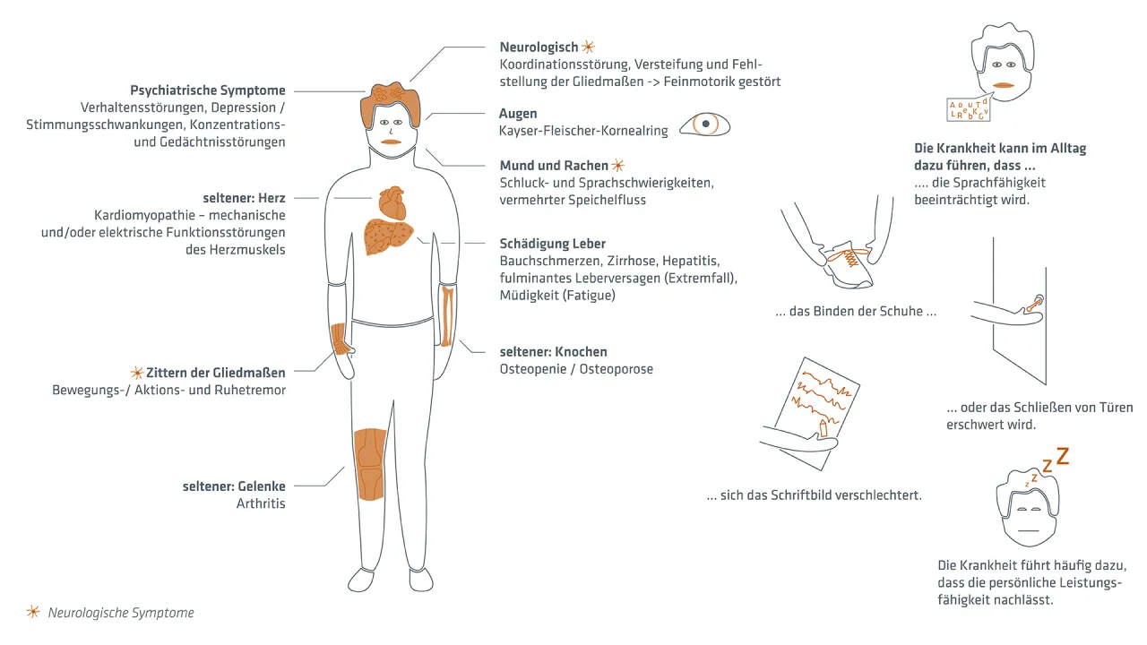 Unbehandelt führt die fortschreitende Kupferakkumulation vor allem in der Leber und im Gehirn zu schweren Schäden.
